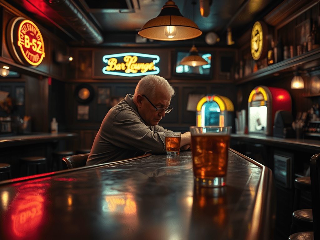 Being in this place felt familiar, yet laced with tremors of uncertainty. Sitting at the furthest end of the l-shaped bar, he surveyed the room. Tonight was different from most nights. Normally he was that old guy who sat in the corner with his back propped against the wall, enjoying the presence of pretty girls dancing next to the juke box, while the young bucks failed miserably to impress them.